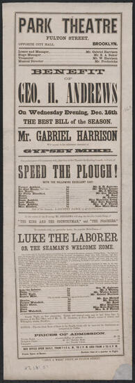 Monday evening, December 7, 1846, the performance will commence with the petite comedy of "Chaos Is Come Again"