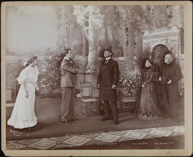 Charles Richman as John Worthing, William Courtney as Algernon Moncrieff, Margaret Dale as Cecily Carew, Mrs. Thomas Wiffen as Miss Prism, and W. H. Crompton as th Reverend Canon Chasuble in a revival of Oscar Wilde's "The Importance of Being Earnest," presented by Charles Frohman.