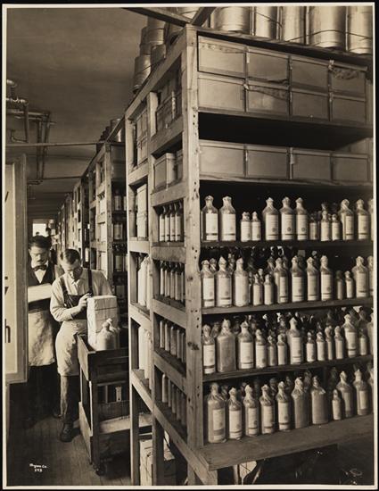 Workers in the storeroom of the Crystal Chemical Co. at 134th Street & Willis Avenue.