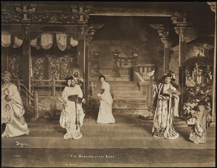 Scene from "Darling of the Gods" featuring Blanche Bates, George Arliss and Robert Haines.