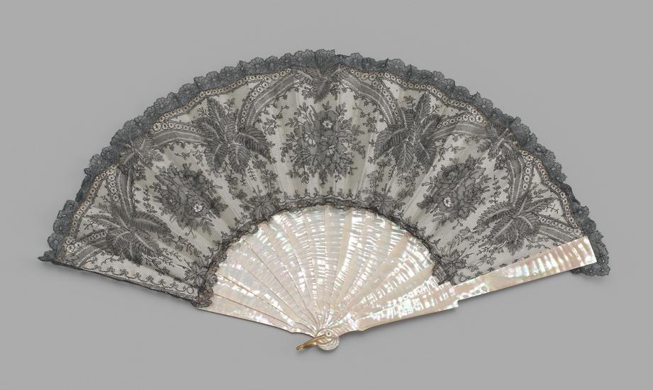 Folding fan of cream lace and net leaf
