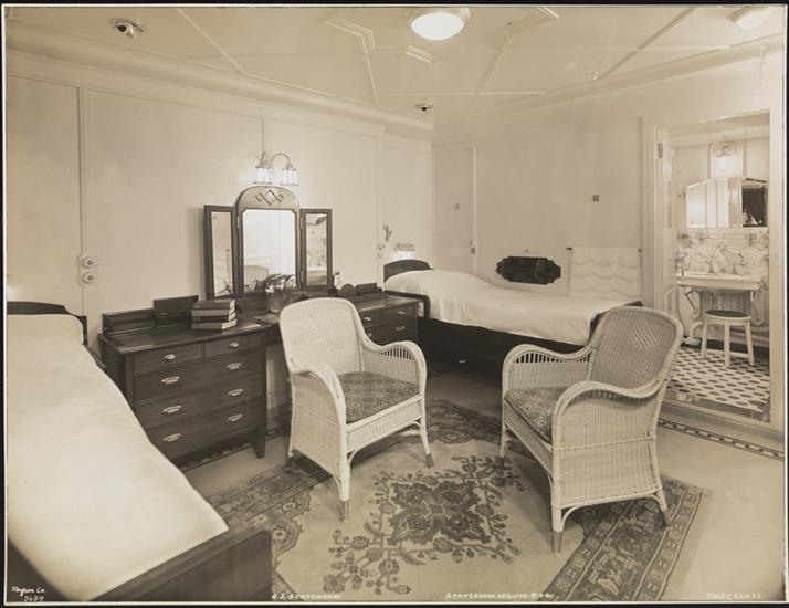 S.S. "Queen of Bermuda", First Class, Interior, Stateroom de Luxe "W".