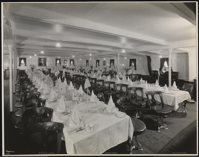 [S.S. "Manhattan", Dining Room, Tourist Class.]
