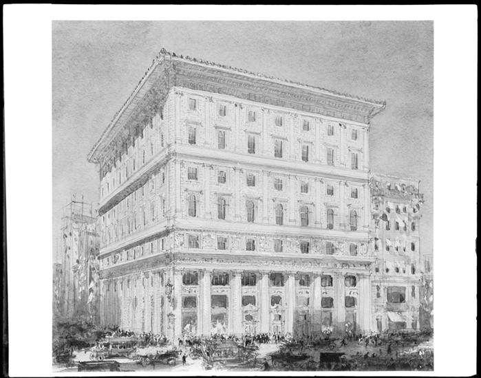 Nine-story building, pencil rendering by [T.W.?] Cross.