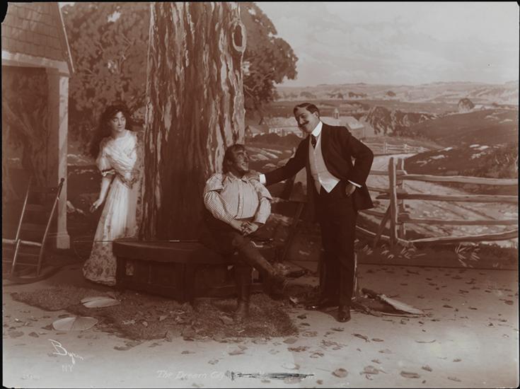 "The Dream City & the Magic Knight." on neg. | "the Magic Knight" has graphite strike marks through it on recto. | ".546e" and "W/38" in pencil on verso. | "Joe Weber/Cecilia Loftus" in pencil on vers