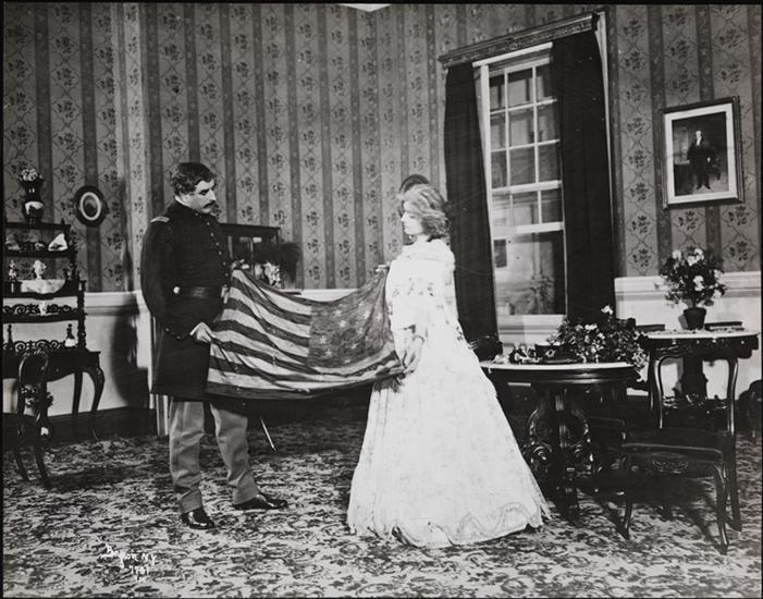 A scene from the romantic drama by Cylde Fitch, "Barbara Frietchie," produced by Charles Frohman at the Criterion Theatre, New York, in 1899, featuring Julia Marlowe as Barbara Frietchie.