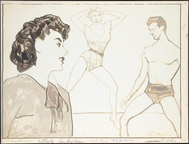 [Paul Valentine as Pinky Harris and Patricia Marand as Teddy Stern in "Wish You Were Here".]