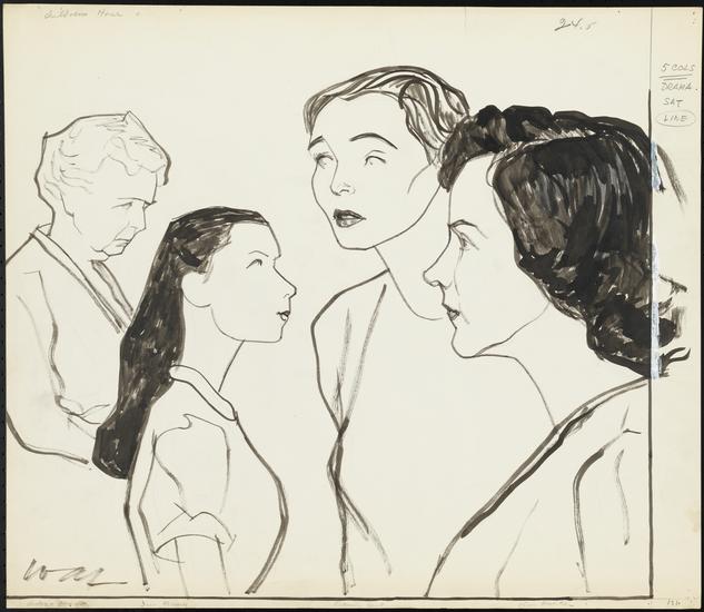 [Anne Revere as Martha Dobie, Florence McGee as Mary Tilford, and Katherine Emery as Karen Wright in "The Children's Hour".]
