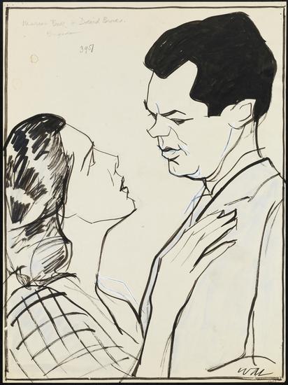 [David Brooks as Tommy Albright and Pamela Britton as Meg Brockie in "Brigadoon".]