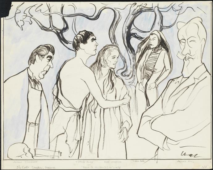 [Canada Lee as Caliban, Arnold Moss as Prospero and Vera Zorina as Ariel in "The Tempest".]