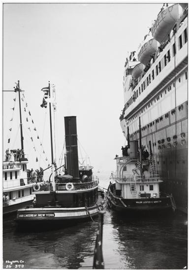 French Line, S.S. "De Grasse" and Tug and Scow.