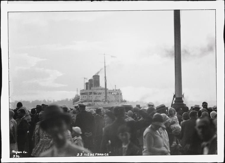 French Line, S.S. "Ile de France" Welcoming Tugs Alongside.