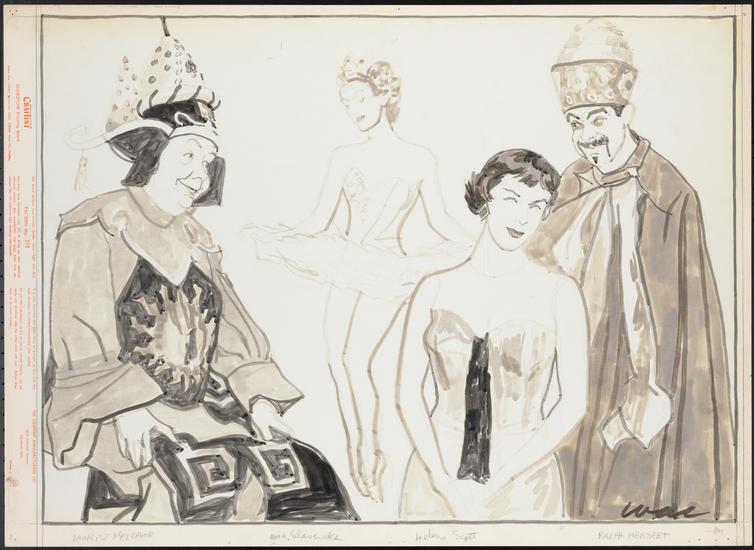 [Alexandra Danilova, Mia Slavenska and Leon Danielian in "Ballet Russe de Monte Carlo".]