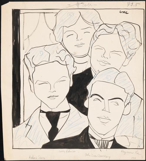 [Richard Simon as John, John Drew Devereaux as Clarence, Larry Robinson as Harlan and Raymond Roe as Whitney in "Life With Father".]