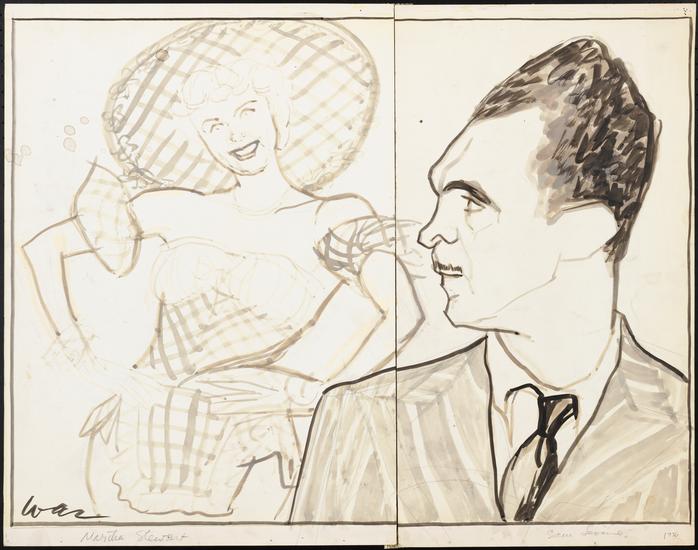 [Sam Levene as Nathan Detroit and Vivian Blaine as Miss Adelaide in "Guys and Dolls".]