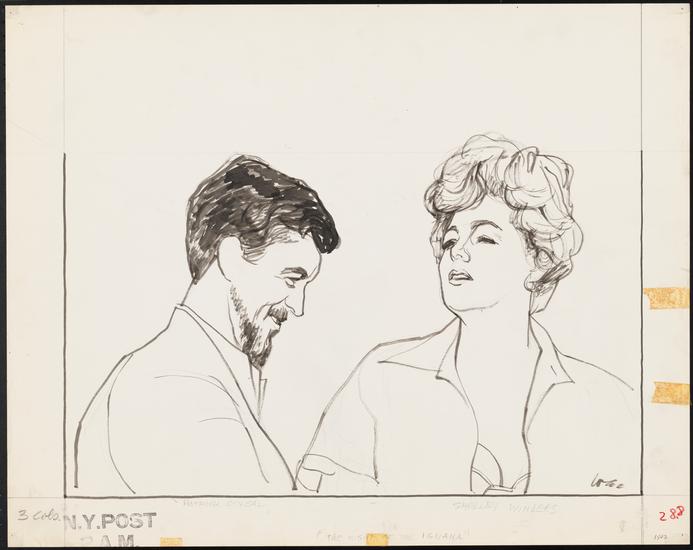 [Patrick O'Neal as The Reverend T. Lawrence Shannon and Bette Davis as Maxine Faulk in "The Night of the Iguana".]