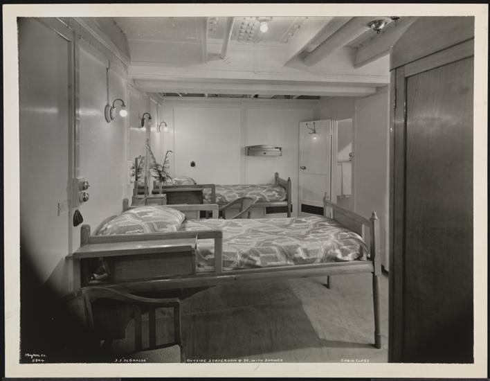 French Line, S.S. "Normandie", Interior, Interchangeable Cl. Outside 2 Bed Stateroom #397.