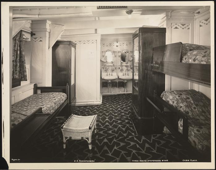 French Line, S.S. "Rochambeau", Cabin Class Interior, 3 Berth Stateroom #119.