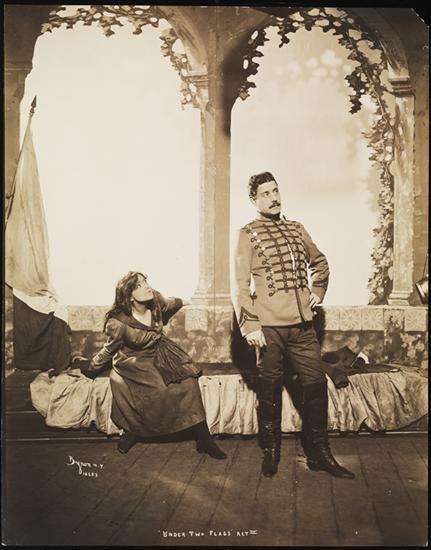 A scene from Paul M. Potter's play "Under Two Flags" presented by Charles Frohman in 1901 featuring Blanche Bates as Cigarette.