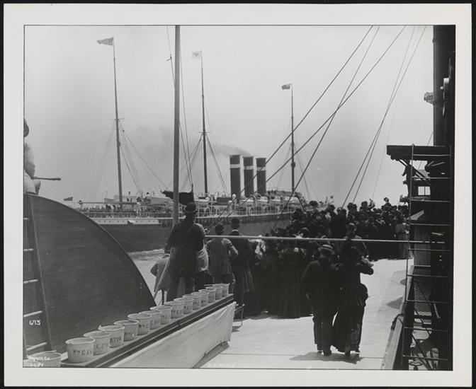 American Line, S.S. "New York", Group Waving to Passengers on Boat.