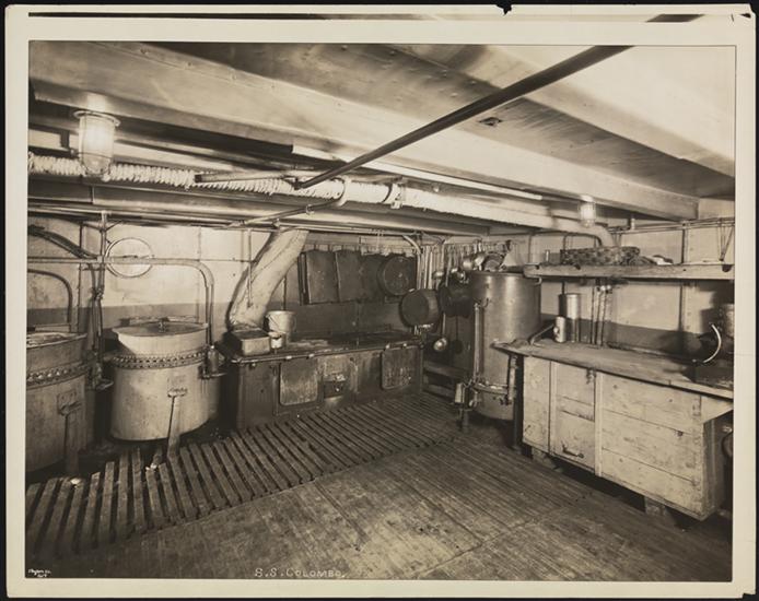 Italia-America Line, S.S. "Colombo", Interior, Second Class Kitchen.