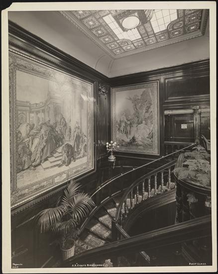Lloyd Sabaudo Line, S.S. "Conte Rosso", Col Serrati, Interior, First Class Companionway.