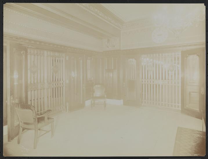 Seating area at the entrance to a safe deposit vault at the Carnegie Trust Co. at 115 Broadway.