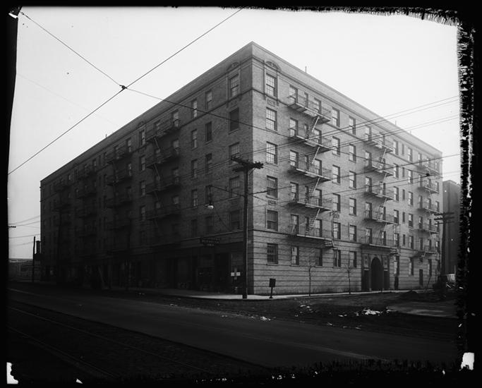 Queens Boulevard and Brogan [?] Avenue. Apartment house.