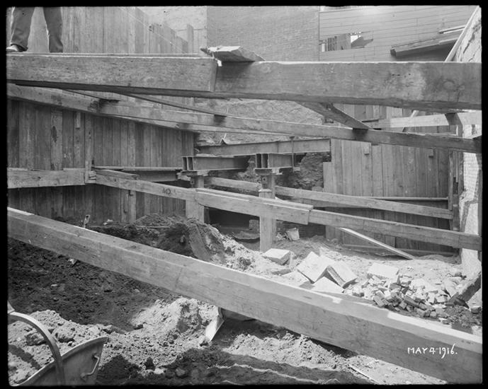 180th Street and Park Avenue. Detail of south wall to Borden's Milk Company Building, view of cracks.