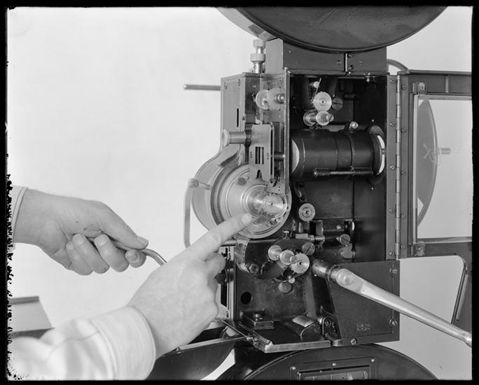 The Precision Machine Co. View of Simplex machine with new lamp-house and motor control.