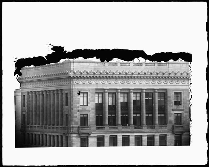 42nd Street and 5th Avenue. Detail of upper half of Astor Trust Building and Bankers Trust Bldg.