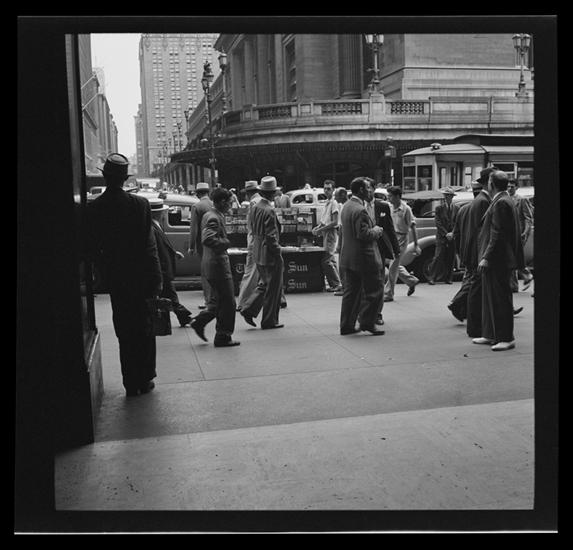 60 East 42nd Street. Lincoln Building, looking south at newsstand in front of entrance, 1:05 p.m.