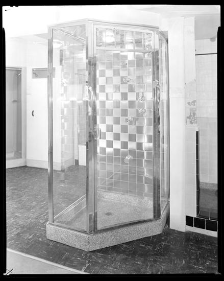 [101 Park Avenue. Architects Samples Corporation. Interior, bathroom exhibit.]