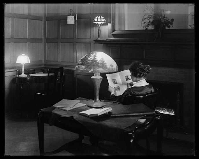 View of Miss M. Zimmerman at her studio, [detail of] jewelry on desk.