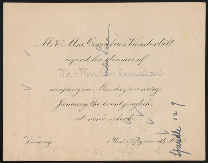 [Mr. and Mrs. Jay Freeborn Carlisle request the pleasure of Miss Ludlow's company at a thé dansant in honour of Miss Alice Belmont.]