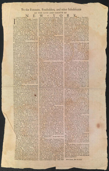 Declaration and petition of freeholders and inhabitants of Suffolk County to Richard Howe, 1st Earl Howe and William Howe, 5th Viscount Howe, October, 1776