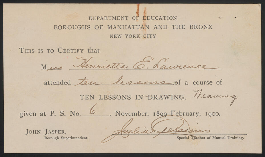 [Testimonial to punctuality, deportment and diligent attention to study.]