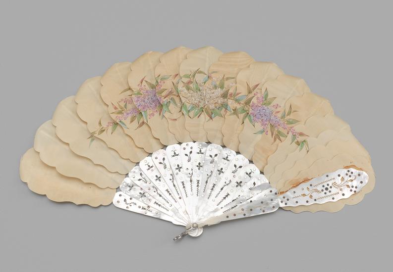 Fan of tan silk palmettes with painted floral design