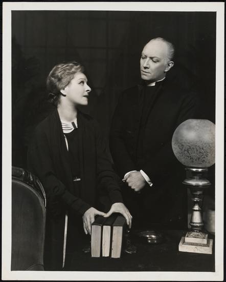 [Alla Nazimova as Mrs. Helen Alving and McKay Morris as Pastor Manders in "Ghosts".]