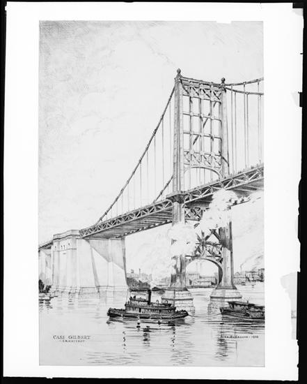 Hudson River Bridge. Rendering by John T. Cronin 1927, revised Feb. 29, 1929.