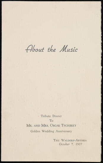The Banquet in Honor of Mr. and Mrs. Oscar Tschirky