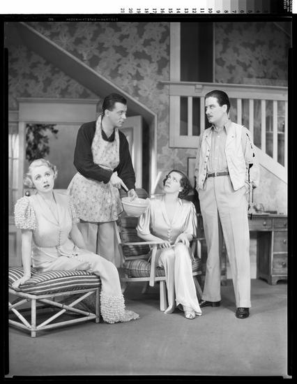 [Kenneth MacKenna as Gordon, Linda Watkins as Penny and Irene Purcell as Tina in "Penny Wise".]