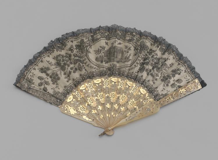 Folding fan of Chantilly lace leaf