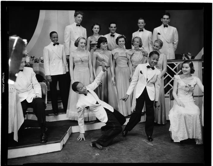 [Rolly Pickert as Gus Fielding and Grace McDonald as Dolores Reynolds in the finale of "Babes in Arms".]