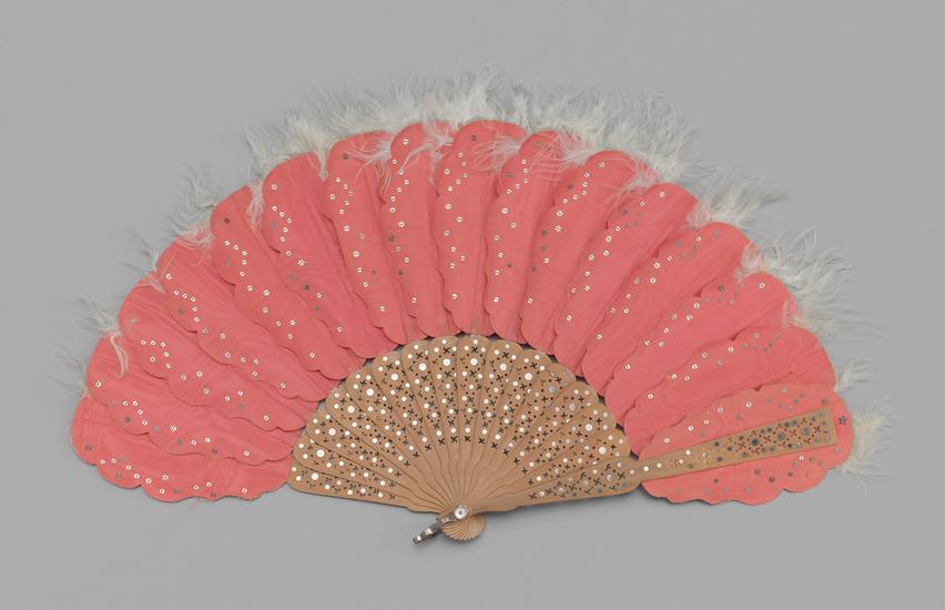 Folding fan of cream hand-painted silk palmette-shaped leaf