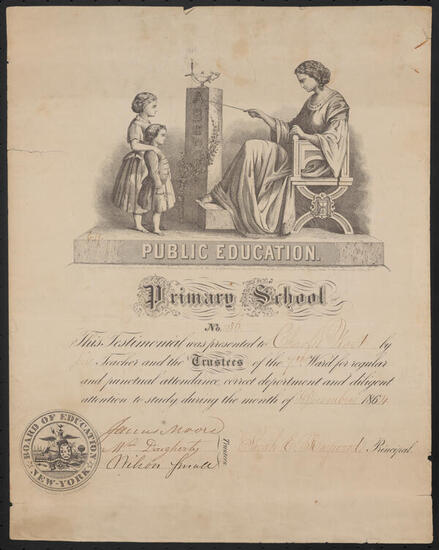 [Testimonial to punctuality, deportment and diligent attention to study.]