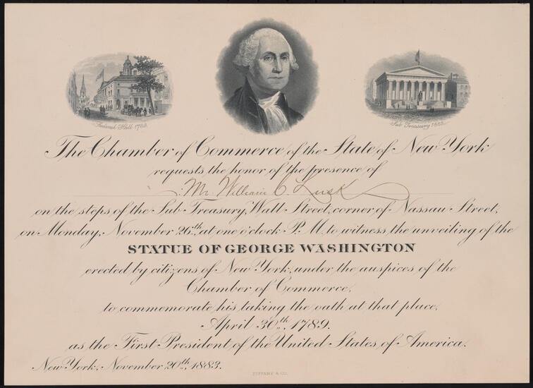 Literary Exercises at the Sub-Treasury Building, in commemoration of the Inauguration of George Washington as First President of the United States