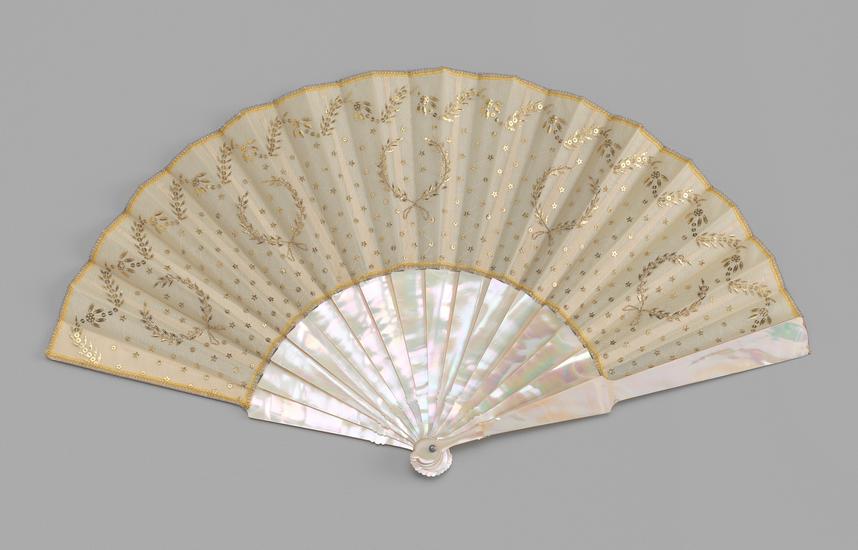 Folding fan of spangled ecru silk gauze