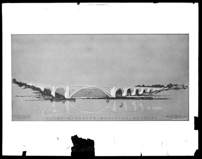 Plan, Hendrik Hudson Memorial Bridge. Rendering dated 1928 by J.R. and G.S.D.