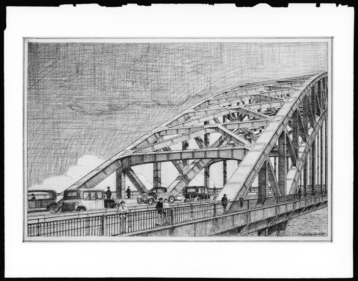 Bayonne Bridge. Charcoal rendering by John T. Cronin 1927.